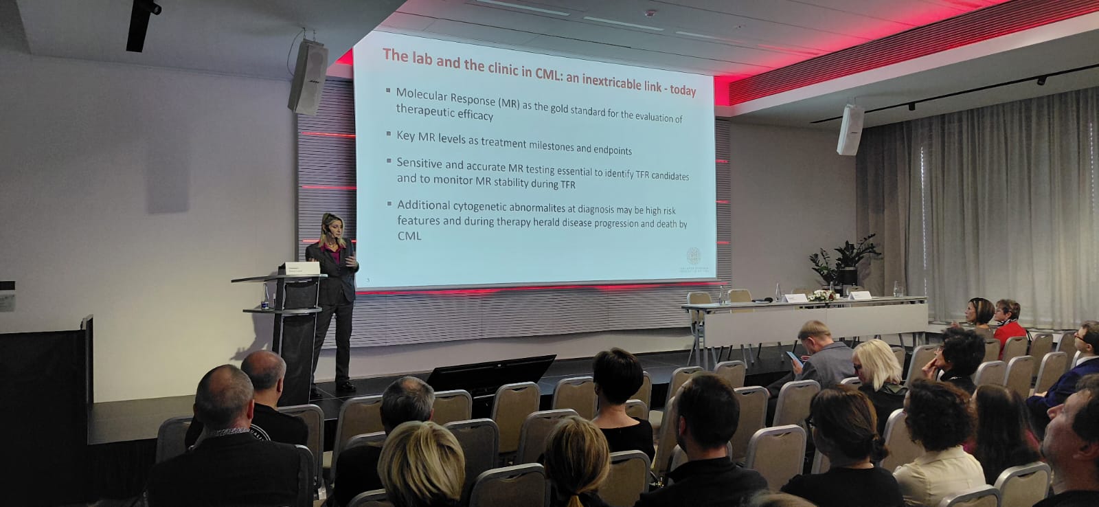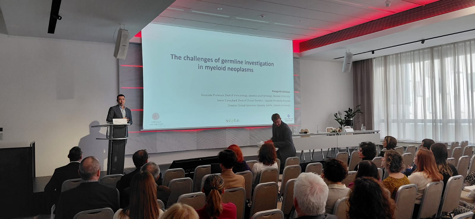 Účast na přednáškách přijali i zahraniční hosté, paní Dr. Simona Soverini z Bologne. Její výzkumné zájmy spočívají v oblasti translační hematologie se zaměřením na charakterizaci mechanismů lékové rezistence a identifikaci nových terapeutických cílů u akutních a chronických leukémií. Dalším zahraničním přednášejícím byl Dr. Baliakas Panagiotis z Uppsalské univerzity. Jeho tým se zaměřuje na genetickou charakterizaci rakoviny, chronické lymfocytární leukémie a myeloidních malignit.